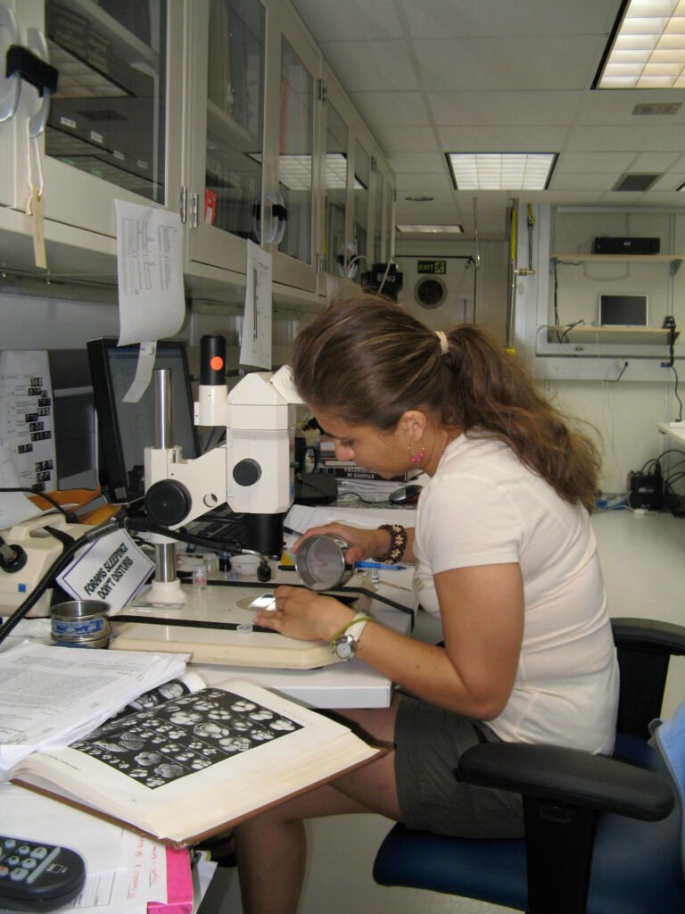 Todavía recuerda cuando vio bajo el estereoscopio los foraminíferos que había estado buscando durante largos meses de trabajo: “fue tan bonito. Ahí estaban. Habían pasado 100 millones de años para que yo los viera. Es difícil describir esa satisfacción personal. Me enamoré por completo, no solo de los fósiles en sí, sino de todo lo que estos representaban: las historias que podían contar y darte cuenta de que eres buena en algo”.